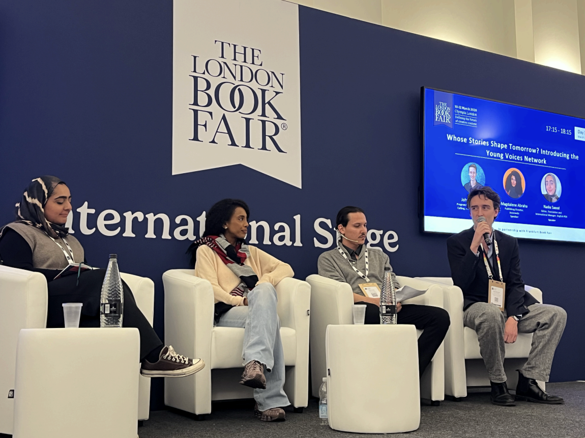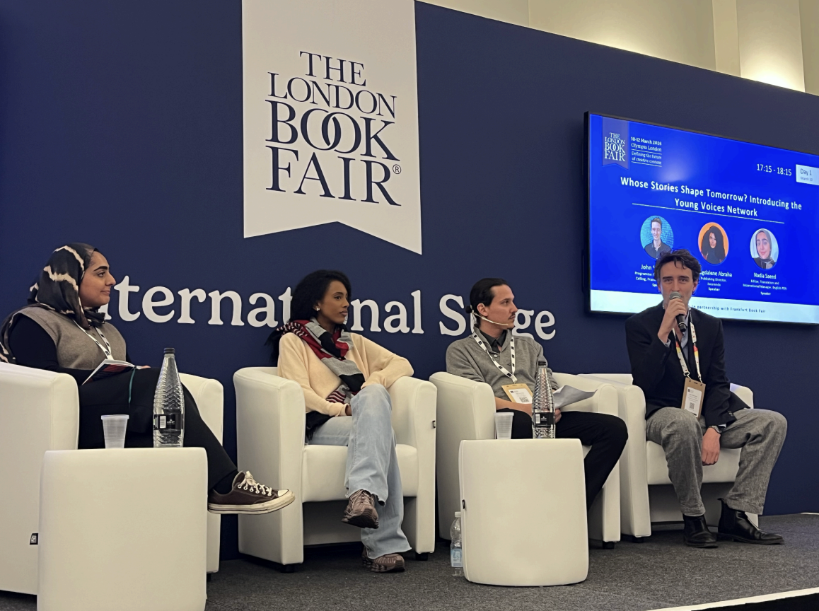 IPA’s day then continued at the panel “Whose Stories Shape Tomorrow? Introducing the Young Voices Network” at the International Stage. This joint event by Frankfurter Buchmesse and the London Book Fair introduced the Young Voices Network, launched in Frankfurt in cooperation with IPA, PEN International, and the World Expression Forum. Moderated by John Steinmark (Programme Manager, Frankfurter Buchmesse), the panelists included Ege Dündar (Board Member, PEN International), Nadia Saeed (Translation and International Manager, English PEN), and Magdalene Abraha (Publishing Director, Jacaranda).